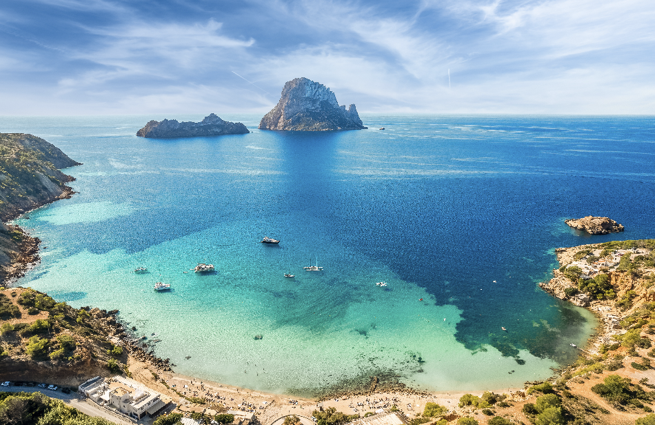 Ibiza fait partie des 5 îles de l’Archipel espagnol des Baléares avec Majorque, Minorque, Formentera et Cabrera située en Méditerranée à seulement une centaine de kilomètres de la ville de Valence qui se trouve sur le continent ibérique. C’est la troisième plus grande île de cet archipel avec ses 572 km2 et avec Formentera elle forme un chapelet d’îles appelées «Pityuses» dû aux nombreuses forêts de pins couvrant ces lieux insulaires. Ibiza, sous un relief très vallonné est parsemé de roches calcaires et de nombreuses falaises côtières, les magnifiques criques et les belles plages de sables font partie de son littoral. Son point culminant est le mont « Sa Talaiassa » avec ses 475 mètres de hauteur offrant un panorama de 360° sur tout l’archipel et la côte espagnole. La population de l’île majoritairement espagnole est d’environ 150.000 habitants mais elle peut dépasser les 400.000 durant la période estivale avec l’arrivée de nombreux touristes. La langue officielle est le catalan mais le castillan est parlé par un grand nombre de la population qui est à majorité chrétienne.