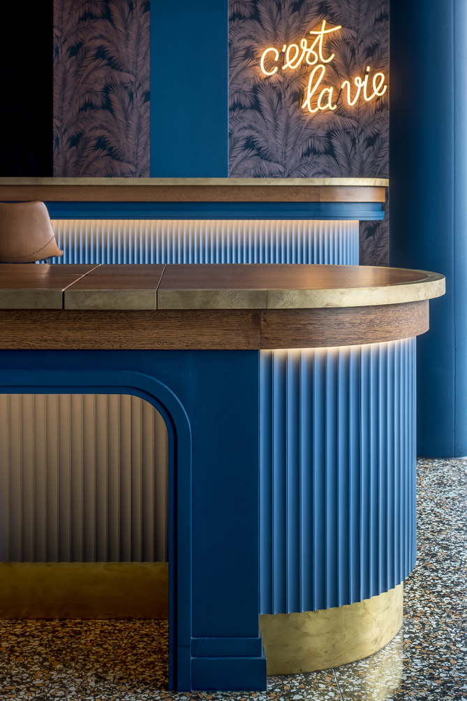 Dans un restaurant, par exemple, tout commence avant même la première bouchée. Une entrée étroite et sombre peut créer une transition intime avec la rue. Une cloison ajourée laisse deviner la salle sans la dévoiler entièrement. Le client ralentit, observe, s’immerge. Le parcours est déjà une narration.